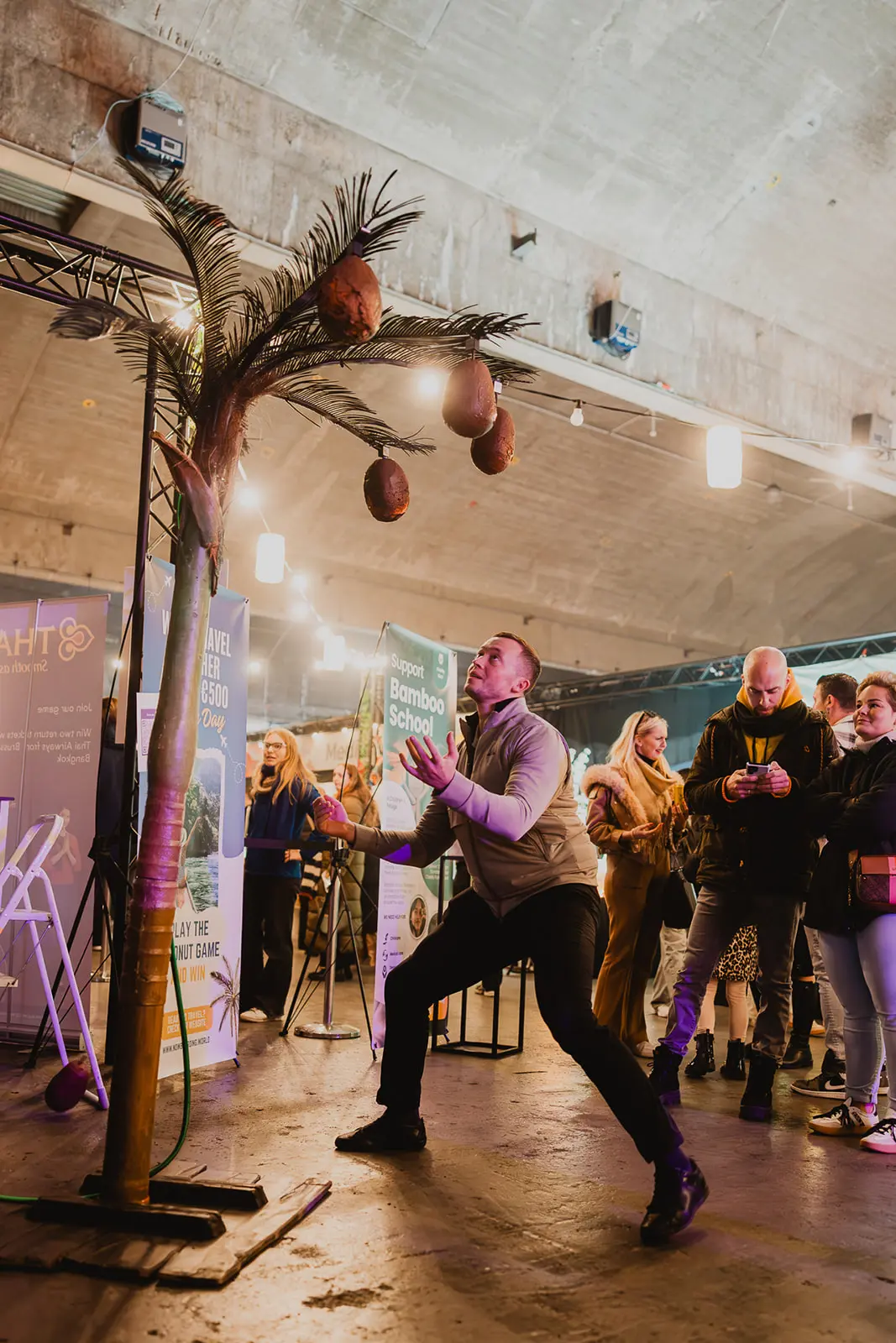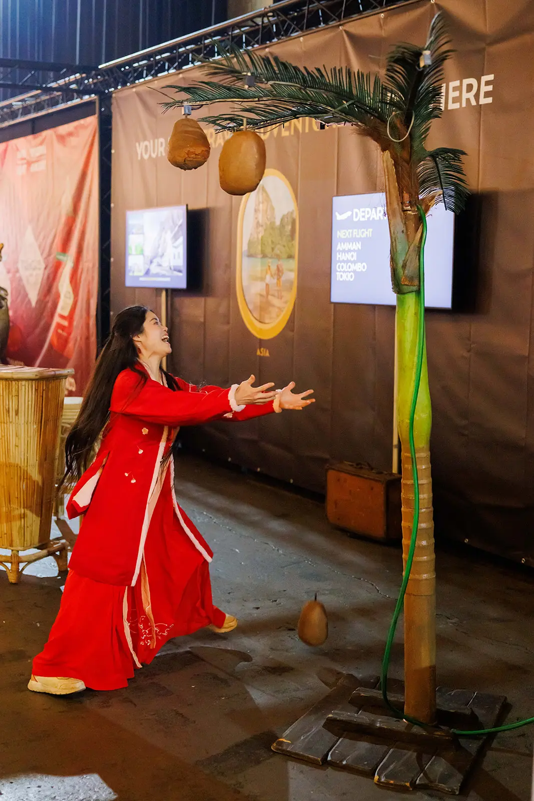 Bij Now Boarding test je je skills in het Catch The Coconut-spel: onverwacht vallen kokosnoten uit een palmboom en jij probeert er zoveel mogelijk te vangen.